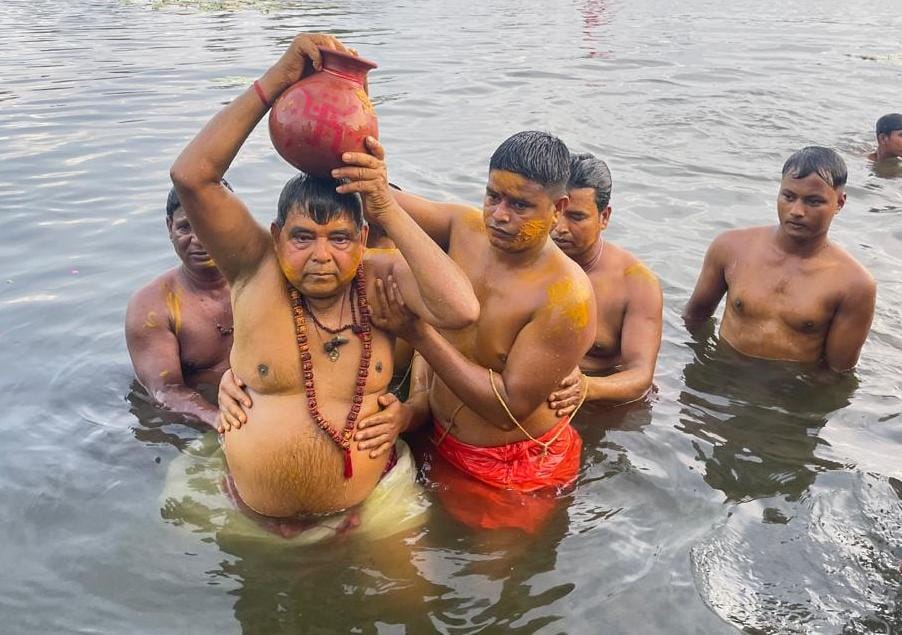 पंडा ने विधिपूर्वक किया। इसके बाद भोक्ताओं ने तालाब में पुनः स्नान किया और नृत्य-गान के साथ मंदिर पहुंचकर भगवान शिव की पूजा-अर्चना की।