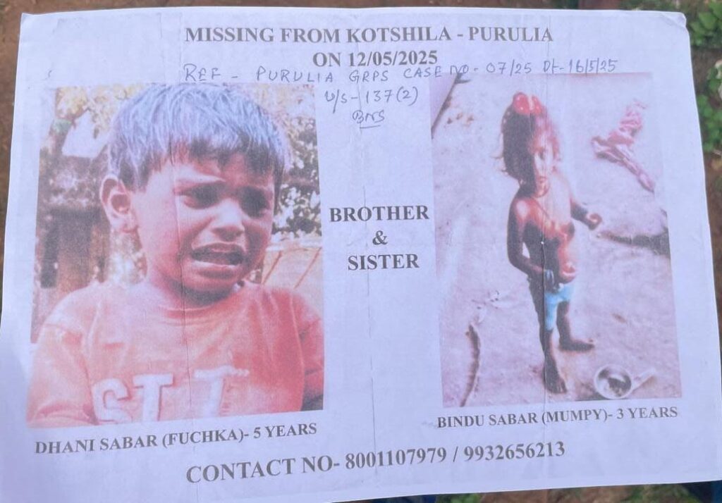 चाकुलिया नगर पंचायत कार्यालय से सटी गुलगुलिया बस्ती के निवासी काला सबर के दो मासूम बच्चे — पांच वर्षीय धनी सबर (उर्फ फूचका) और तीन वर्षीय बिंदु सबर — बीते 12 मई से लापता हैं। दोनों बच्चे उस दिन पश्चिम बंगाल के कोटशिला (जिला पुरुलिया) स्थित अपने नाना के घर गए थे, जहां से वे अचानक गायब हो गए।